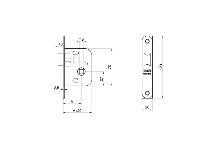 - Cerrojo picaporte de paso reversible y accionable mediante manija.